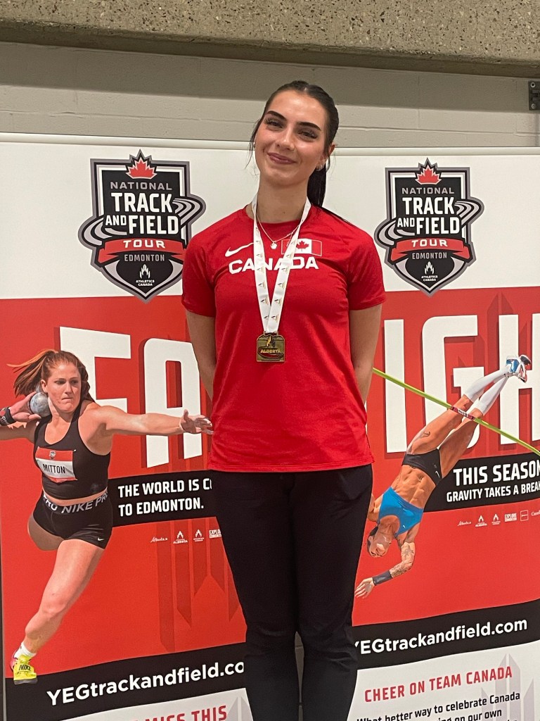 Congratulations to Katie Pasutto who won the U20 60mh on the weekend at the provincial indoor championships. Red Deer track & field / Alberta Speed School and high performance coach Ronald Hewer wish to congratulate Katie for her excellent performance.