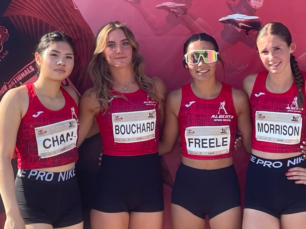 The women’s U18 4x400m relay team ran 3:59 which earned them a 7th overall ranking. The team was composed of Olivia Chan, Cassidy Bouchard, Sianna Freele, Macy Morrison.