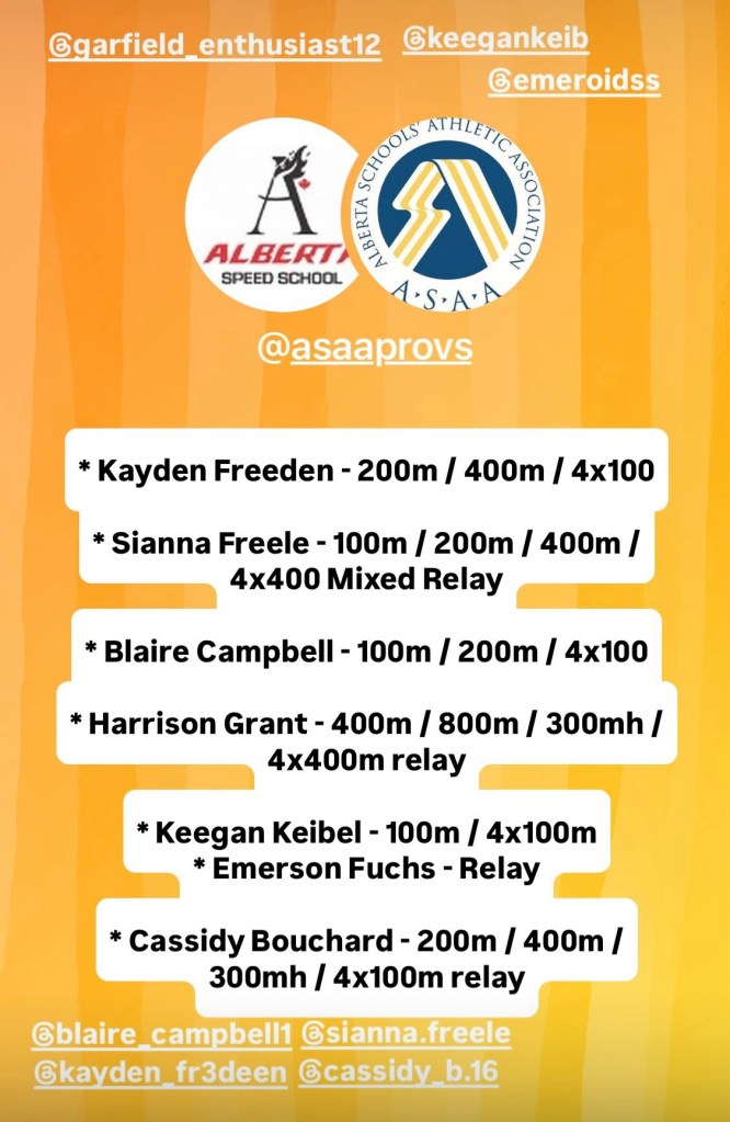 Good luck to our Alberta Speed School TC athletes competing this weekend in Calgary at the ASAA provincial championships.